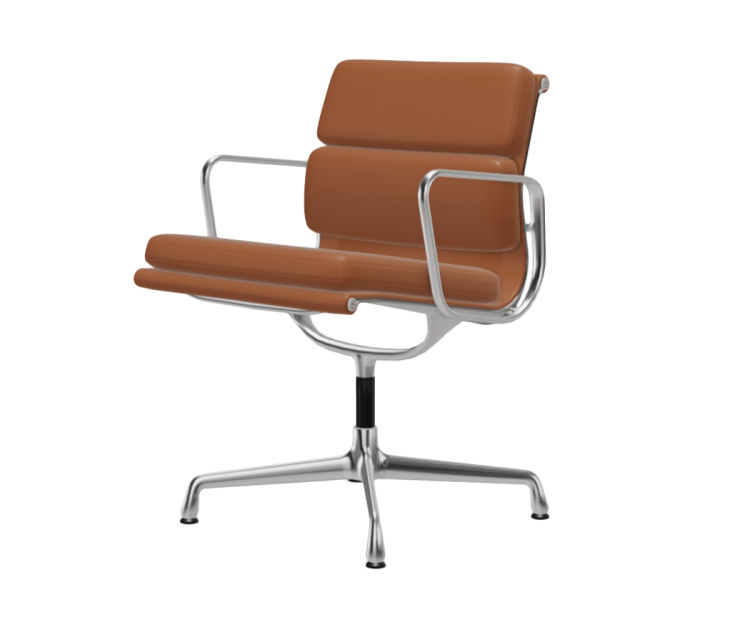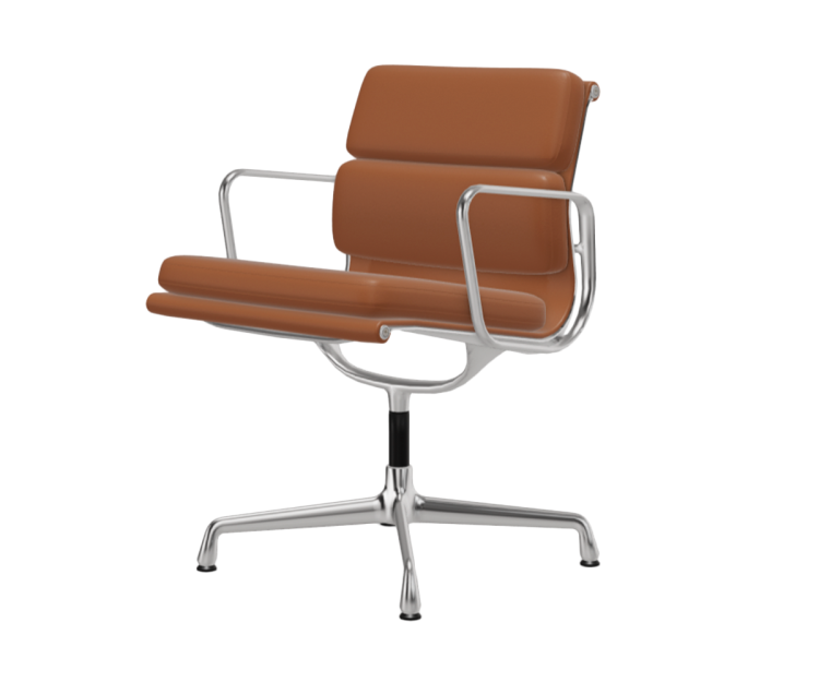 Det ikoniske design af Charles og Ray Eames' Soft Pad Chairs EA 207 gør den ideel til et møde- og konferencerum. Stolens polstring sikrer en blød siddekomfort. Med et udvalg af forskellige typer læderbetræk i et stort udvalg af farver kan man finde den rigtige version til ethvert interiør. Soft Pad Chair EA 207 er uden drejefunktion med armlæn og er i denne version klassisk højde.