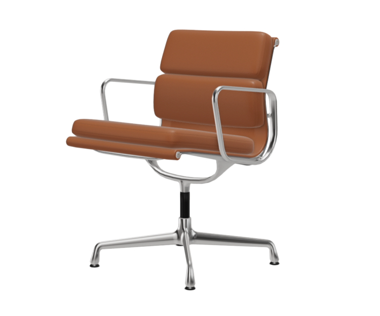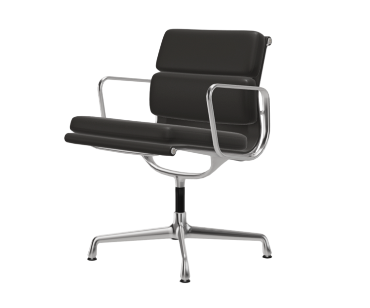 Det ikoniske design af Charles og Ray Eames' Soft Pad Chairs EA 208 gør den ideel til et møde- og konferencerum. Stolens polstring sikrer en blød siddekomfort. Med et udvalg af forskellige typer læderbetræk i et stort udvalg af farver kan man finde den rigtige version til ethvert interiør. Soft Pad Chair EA 208 er med armlæn og drejfunktion og er i denne version klassisk højde.