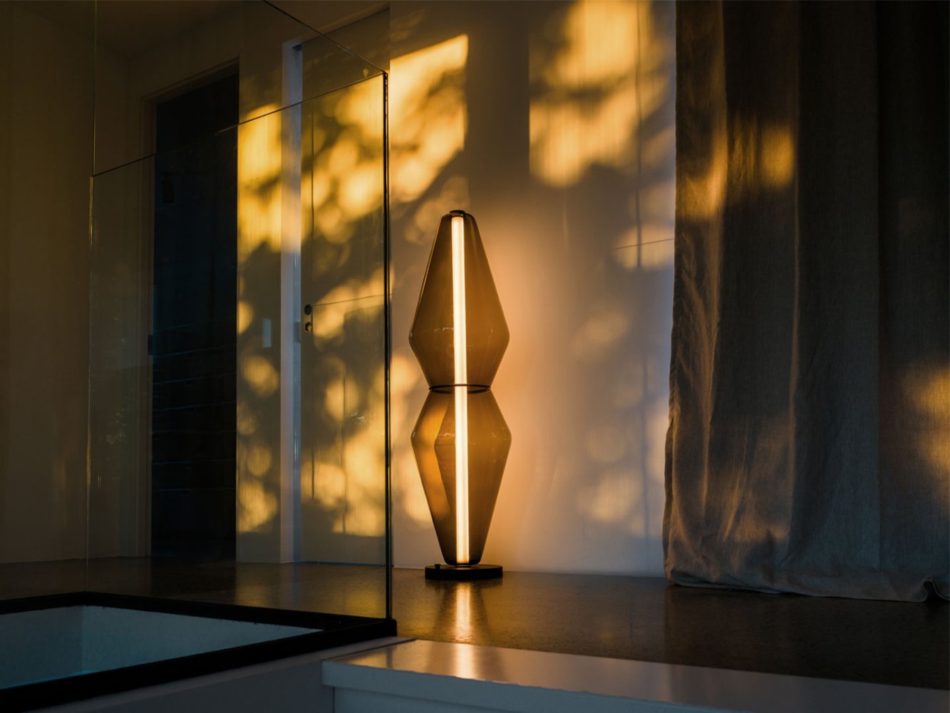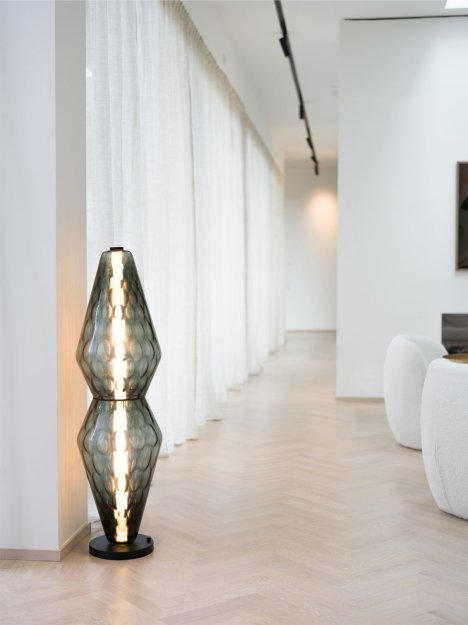 The Palazzo er en atmosfærisk gulvlampe, der forener kunstnerisk glasdesign med funktionel belysning – skabt til at forme stemningen i rummet.
