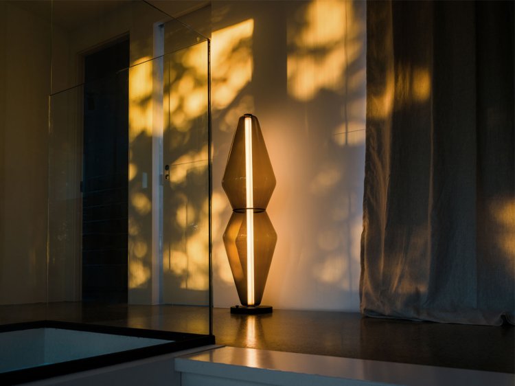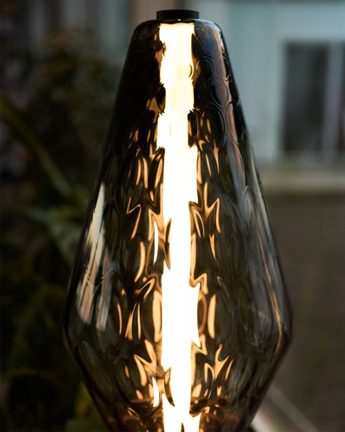 The Palazzo gulvlampen er et kunstnerisk møde mellem præcision, håndværk og atmosfære. Lampen er fremstillet i mundblæst glas og kendetegnet ved sin markante, kantede silhuet, der giver den et skulpturelt udtryk med både dybde og tilstedeværelse. Hver eneste lampe er et unikt stykke glasarbejde, hvor form og finish går op i en højere enhed.