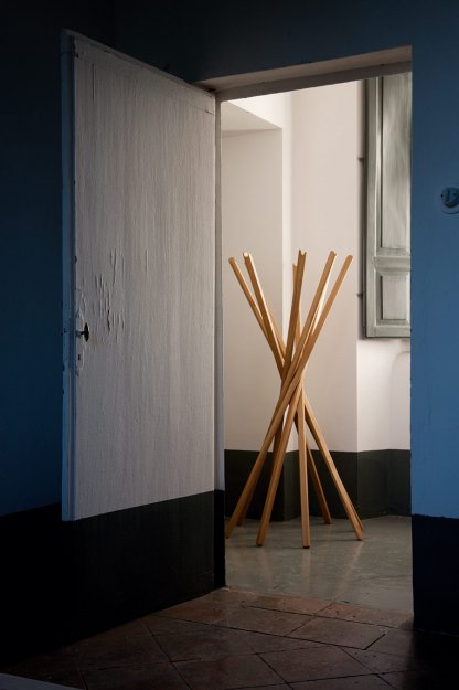 Sciangai er skabt i 1973 af de tre italienske designer Jonathan De Pas, Donato D'Urbino og Paolo Lomazzi. Sciangai er med sit naturlige udtryk og sjove konstruktion idag en ægte design klassiker. Stumtjeneren fås i natur bøg, natur eg eller med lakeret overfalde.