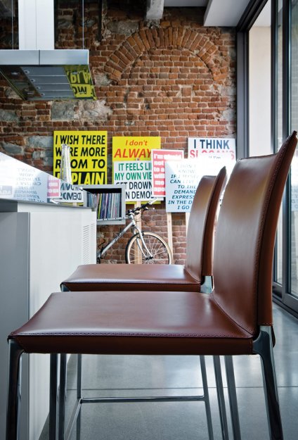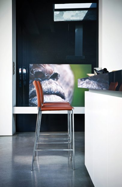 Minimalistisk barstol med poleret eller lakeret aluminiumsstel. Lio er designet af Roberto Barbieri i 2005 som en videreudvikling af serien Lia. Vælg mellem polstring i tekstil eller læder.