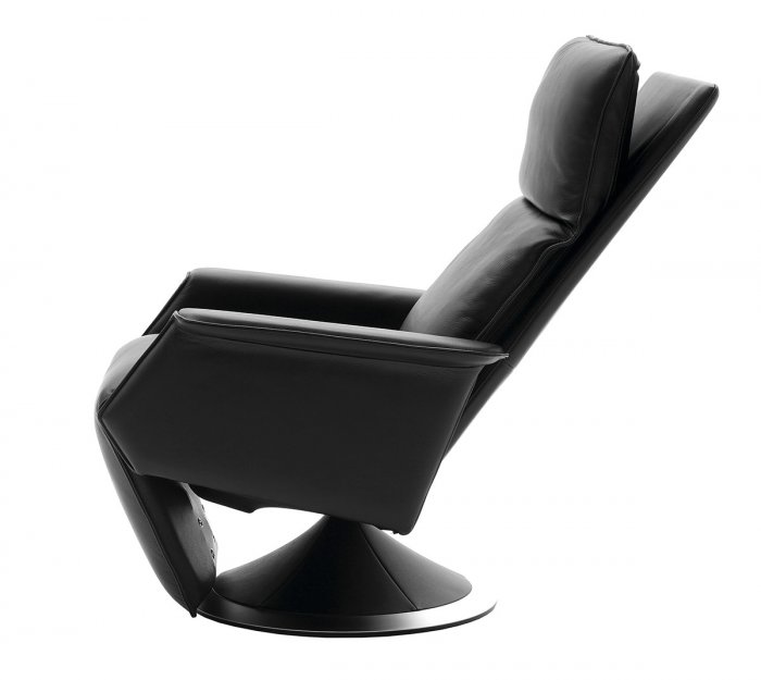 Klassisk elegance og tidløst design giver Ato karakter. Med et let skub på armlænene kommer fodskamlen automatisk op og forlænges med 12 cm. Den unikke funktion giver fuld støtte under ben og læg. Under højre armlæn sidder en forkromet knap. Nâr den skjulte mekanisme under knappen aktiveres, forskydes ryglænet både bagud og nedad - siddekomfort med aflastning at både ryg og lænd. Ryglænet kan justeres individuelt til enhver ønskelig stilling, ligesom nakkepuden kan justeres separat. Sæde og ryg er polstret med skum for at give den optimale støtte og aflastning. Desuden er rygpuden kanalsyet og som noget helt specielt, fyldt med den fineste dun for at give brugeren en oplevelse ud over det sædvanlige. Sokkel fås i 10 træsorter samt i mat eller blank krom i kombination med læder eller stof. Ato kan desuden leveres med batteridrevet motor justering.
