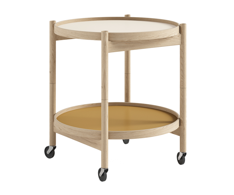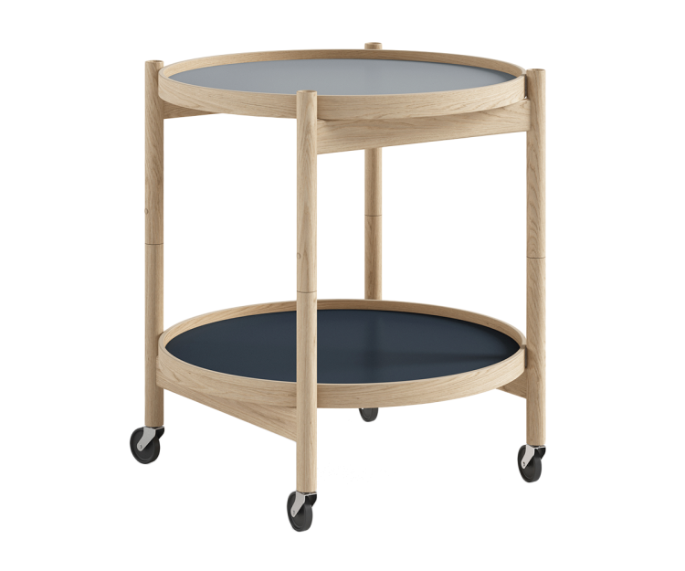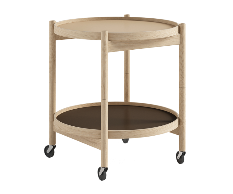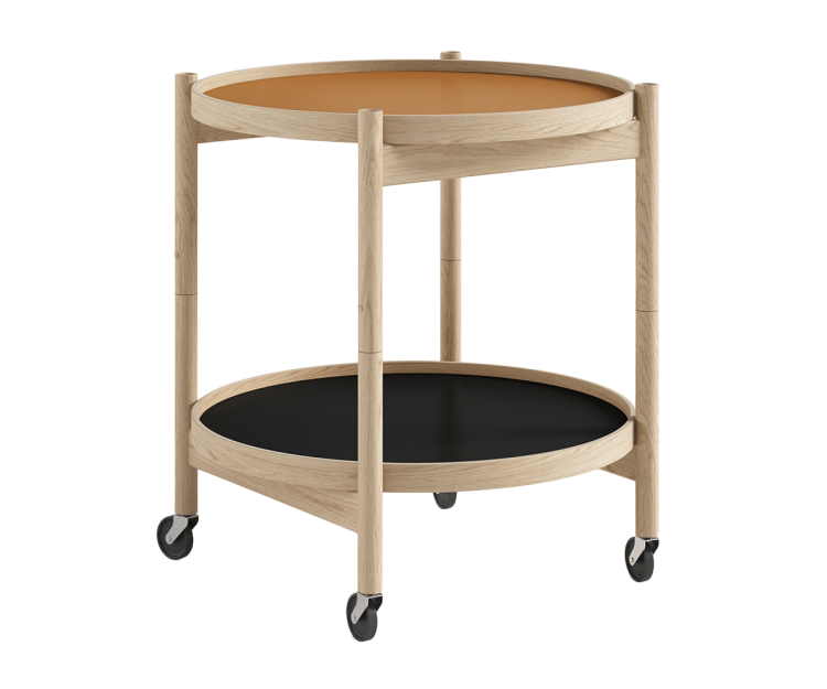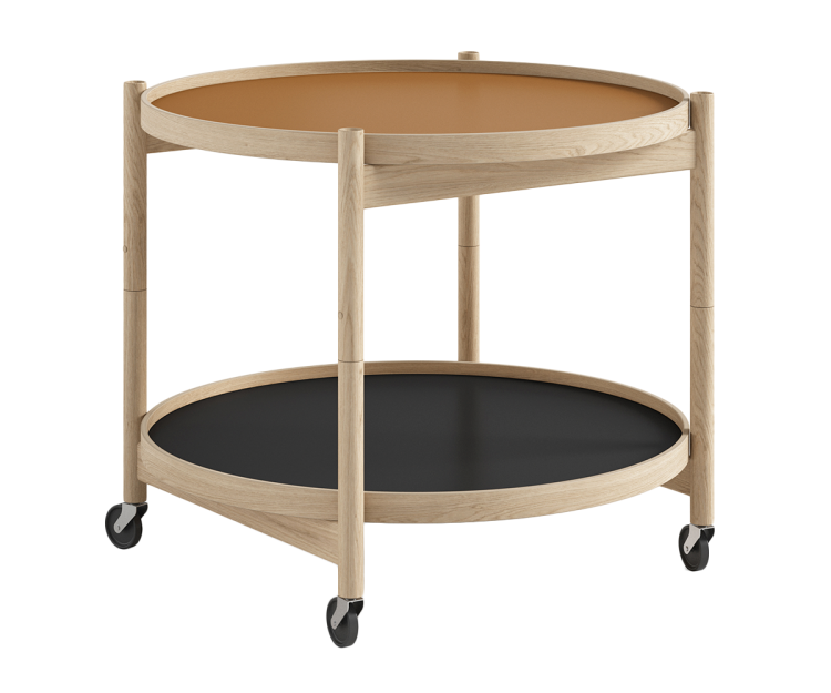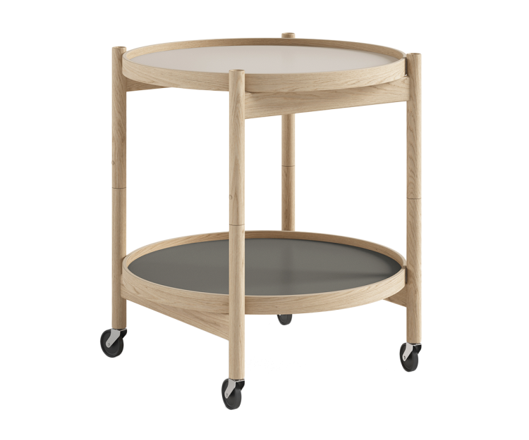 Bakkebordet har et funktionalistisk design og er designet med to vendbare bakker i laminat, der fås i et bredt udvalg af farver. Det giver dig mulighed for at sætte dit personlige præg og tilpasse bordet til netop din indretning.