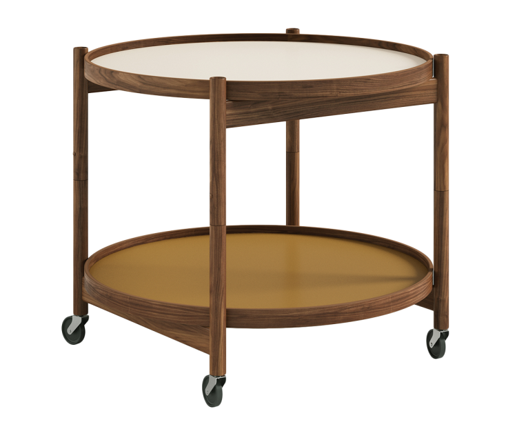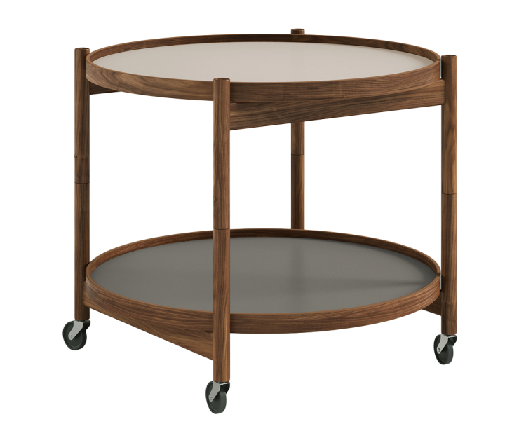 Bølling bakkebord (valnød) er et ikonisk rundt bakkebord med hjul designet af den danske arkitekt og designer Hans Bølling i 1963 og produceret af Brdr. Krüger. Med fokus på funktionalitet og minimalisme skabte Bølling et elegant bakkebord, der passer perfekt ind i det klassiske og moderne hjem.