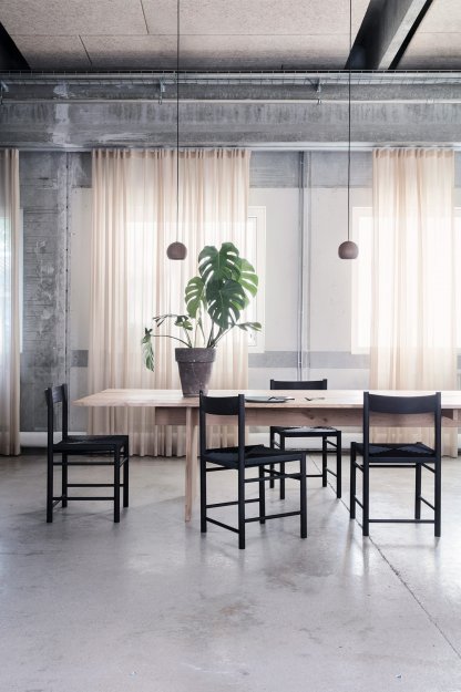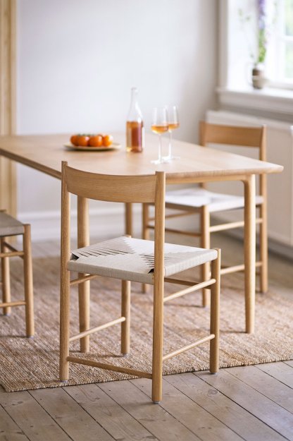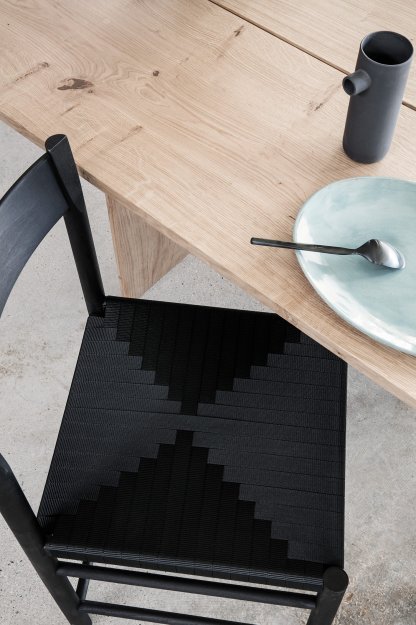 F Chair er en moderne fortolkning af den klassiske Shaker stol. Designet er baseret på traditionelle håndværksmetoder, der inddrager det simple og ærlige udtryk, der er meget typisk for en shaker stol. Ydermere har F Chair en super komfort og de rene linjer og geometriske former sikrer det minimalistiske udtryk.