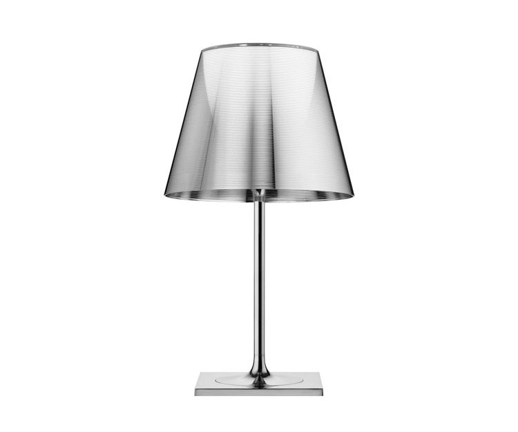 Table luminaire providing diffused lighting. Base, rod support and diffuser support in die-cast, polished and chrome-plated Zamak alloy. Base cover in black injection-molded PA (Nylon). Injection-molded PC (polycarbonate) opal inner diffuser. Outer diffusers in transparent PMMA (polymethylmethacrylate), silver, fabric, fumée or bronze on the inner surface, by vacuum aluminum coating. Injection-molded PC (polycarbonate) upper ring, completely transparent, or transparent brown for the outer bronze diffuser.