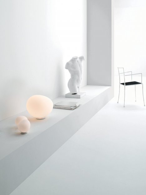 Organisk bord- gulvlampe designet af duoen Ludovica+Roberto Palomba. Gregg er inpireret af de sten du finder ved stranden og hvis overflade er blevet smukt formet i vandet gennem årenes løb. Gregg kommer i en serien af pendler samt gulv- og bordlamper. Bord- gulvlamperne fås i tre størrelser med og uden lysdæmper.