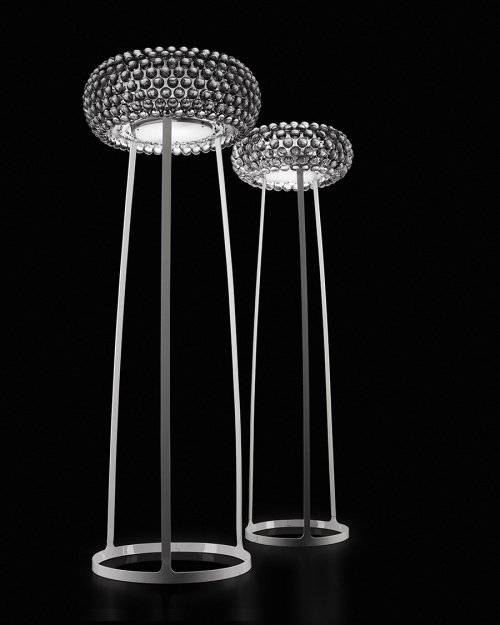Caboche lampen er en mosaik af brydninger, en perfekt sammensmeltning af forskellige personligheder i én form. En lille juvel af kreativitet og teknologi. Caboche standerlampen fås i transparent eller gylden med stel i hvid pulverlakeret stål.