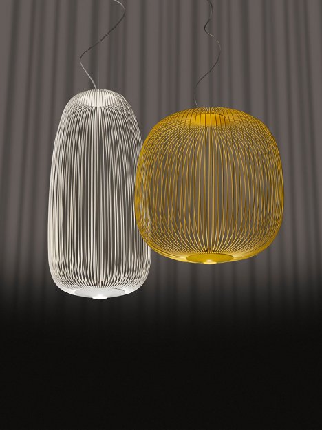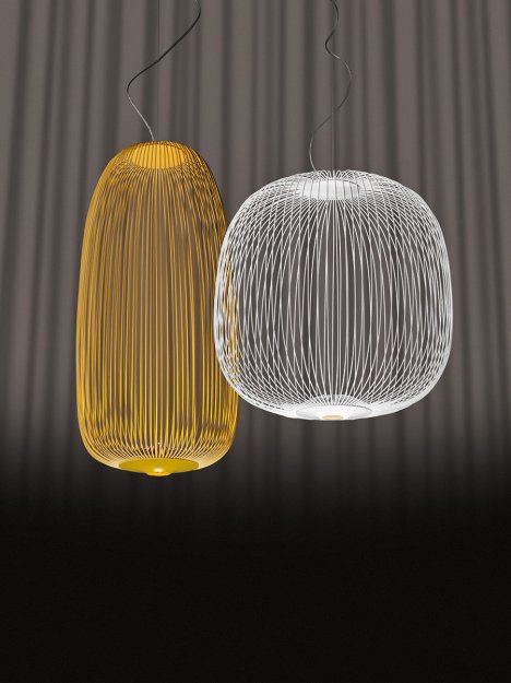 Inspireret af de antikke orientalske lanterner og volierer, har Studio García Cumini designet serien Spokes for italienske Foscarini. Spokes er udviklet med den nyeste LED teknologi, der giver en fantastisk lyseffekt. Spokes fås i to størrelser i hvid eller gylden. Kan også leveres med lysdæmper - ring for pris.