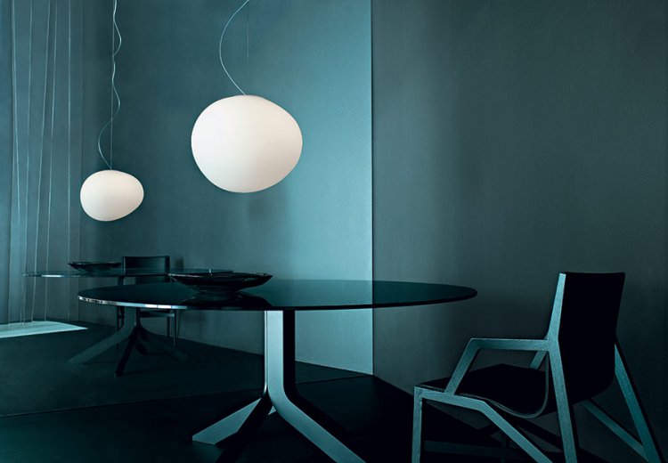 Organisk pendel designet af duoen Ludovica+Roberto Palomba. Gregg er inpireret af de sten du finder ved stranden og hvis overflade er blevet smukt formet i vandet gennem årenes løb. Gregg kommer i en serien af pendler samt gulv- og bordlamper. Pendlerne fås i tre størrelser.