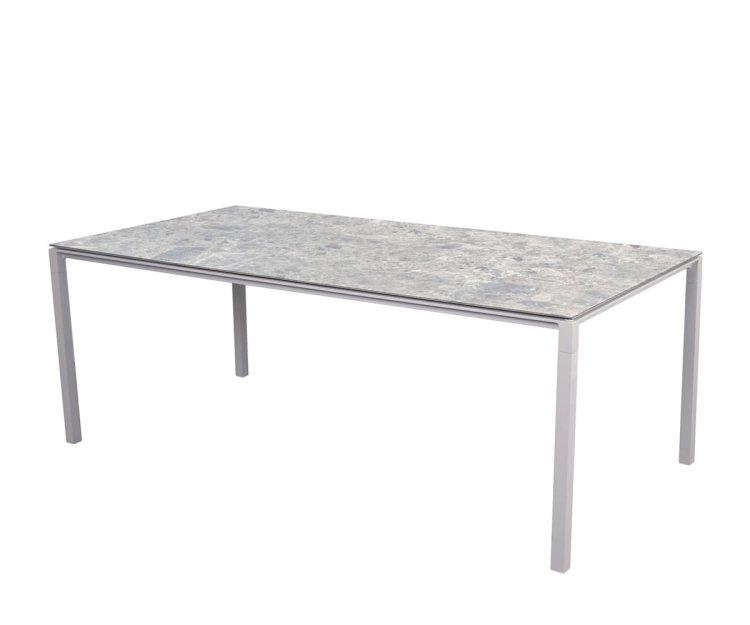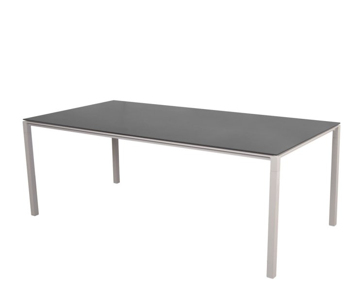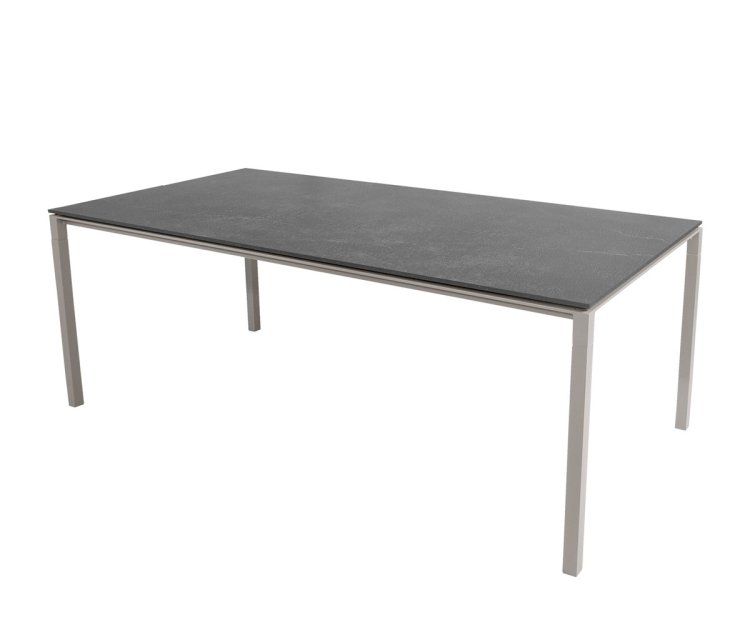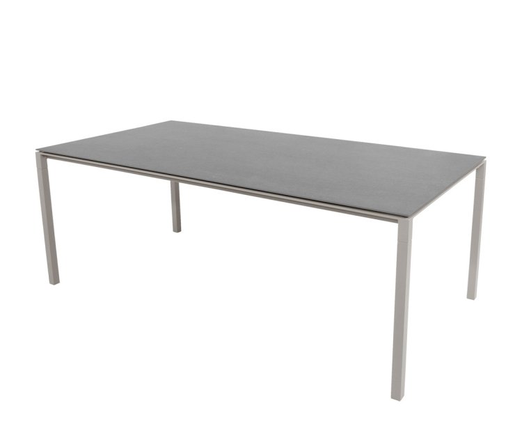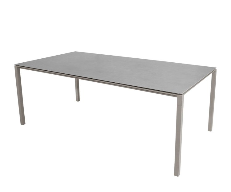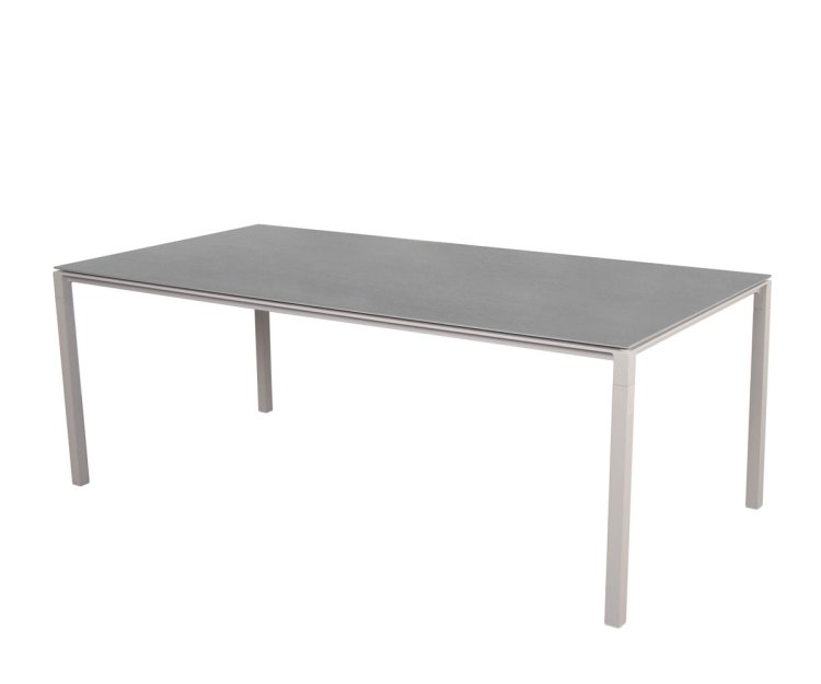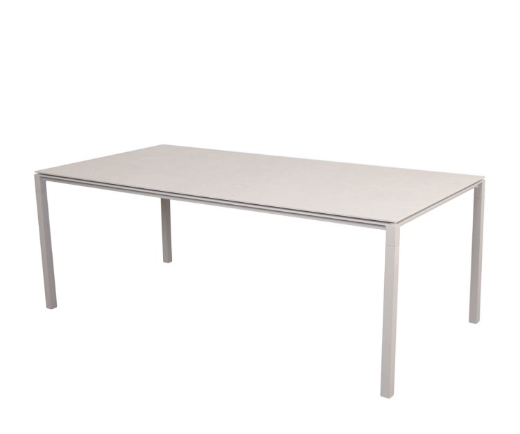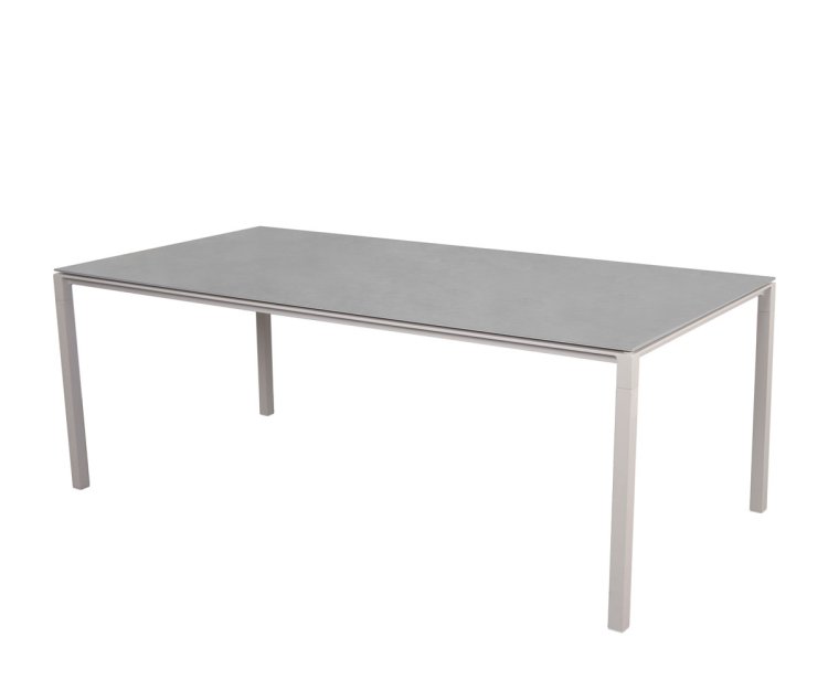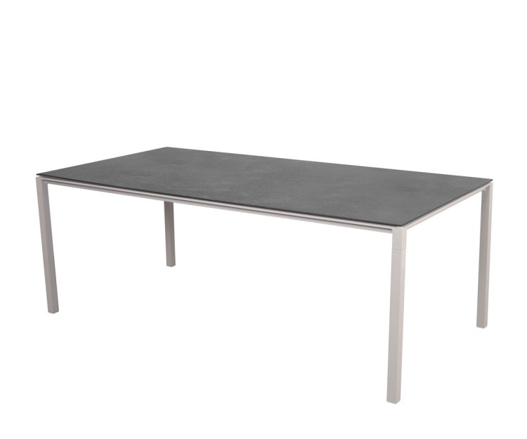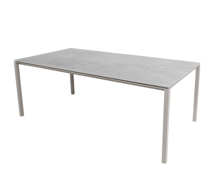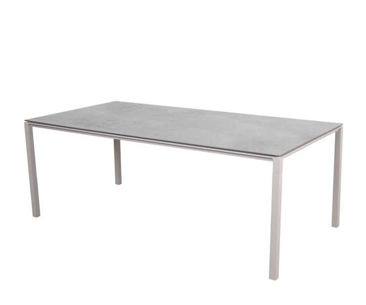 Bordet er fremstillet med et stel i slidstærkt pulverlakeret aluminium, kombineret med en smuk og eksklusiv bordplade i keramik. Materialerne sikrer en lang levetid, og bordet kræver minimal vedligeholdelse. Den ridsefaste overflade kan let rengøres med en fugtig klud, og takket være UV-bestandighed kan Pure spisebordet stå ude i al slags vejr uden at miste sin farve eller finish.
