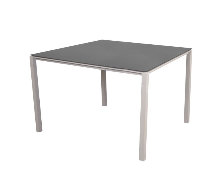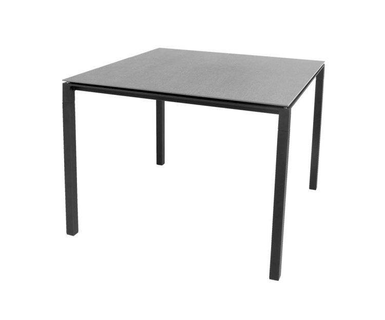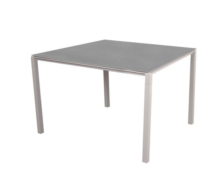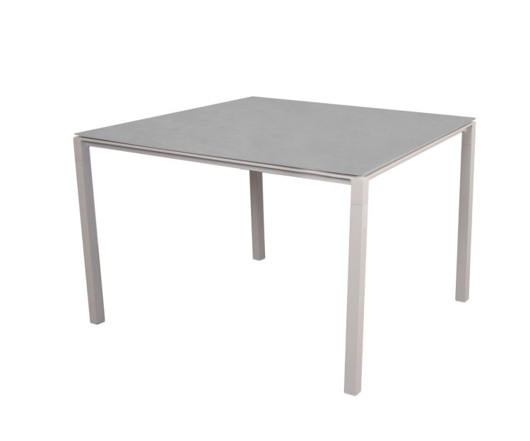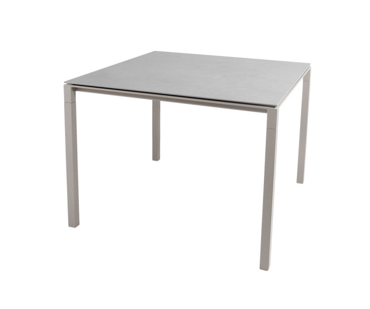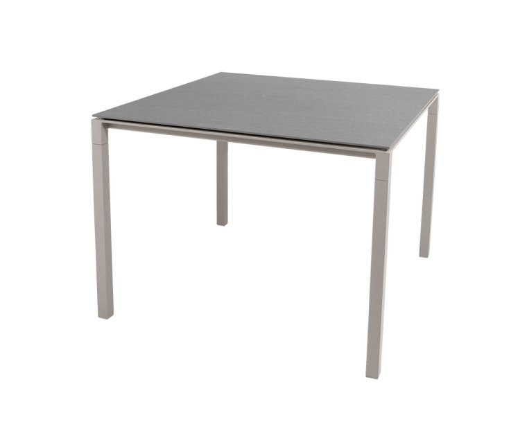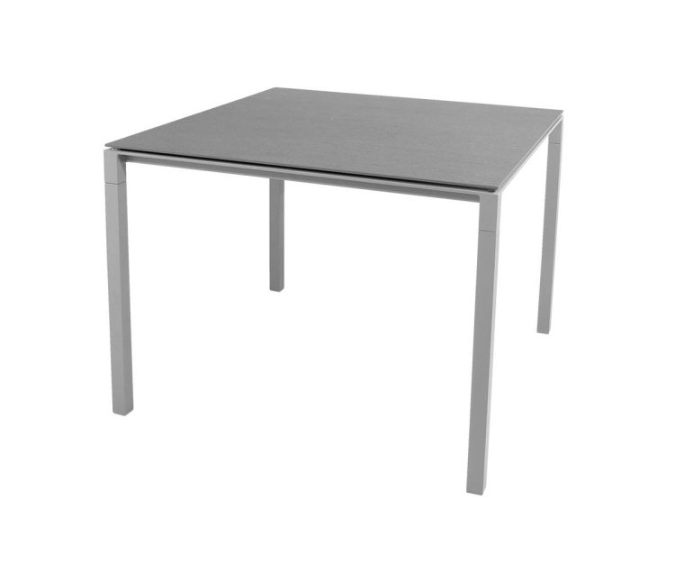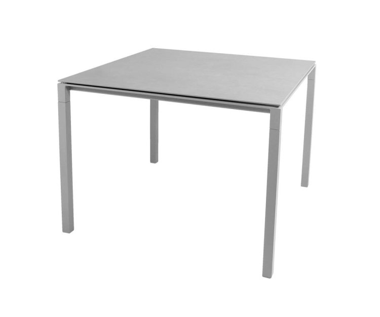Bordet er fremstillet med et stel i slidstærkt pulverlakeret aluminium, kombineret med en smuk og eksklusiv bordplade i keramik. Materialerne sikrer en lang levetid, og bordet kræver minimal vedligeholdelse. Den ridsefaste overflade kan let rengøres med en fugtig klud, og takket være UV-bestandighed kan Pure spisebordet stå ude i al slags vejr uden at miste sin farve eller finish.