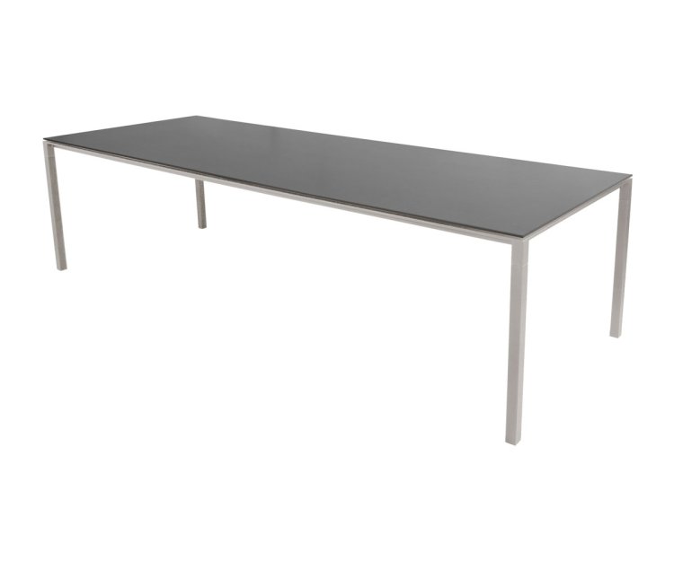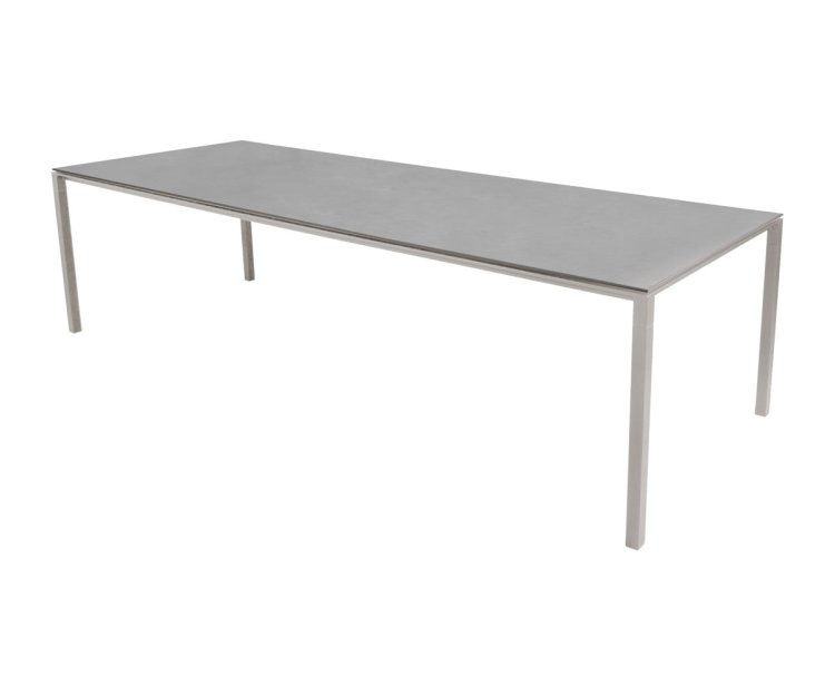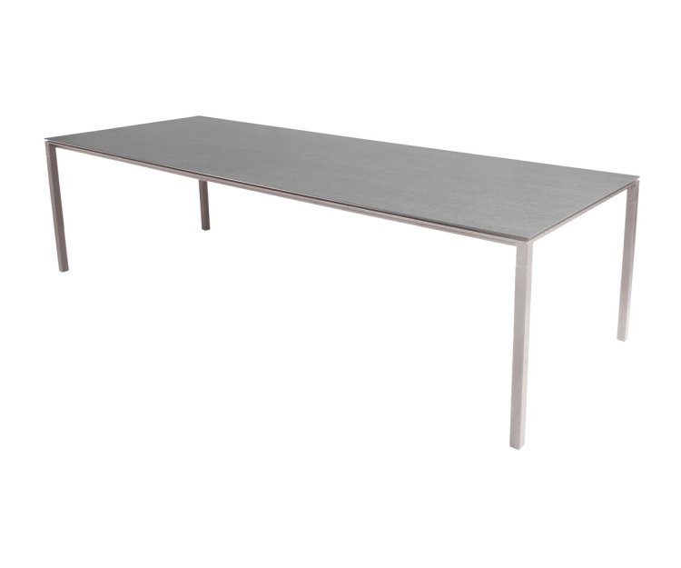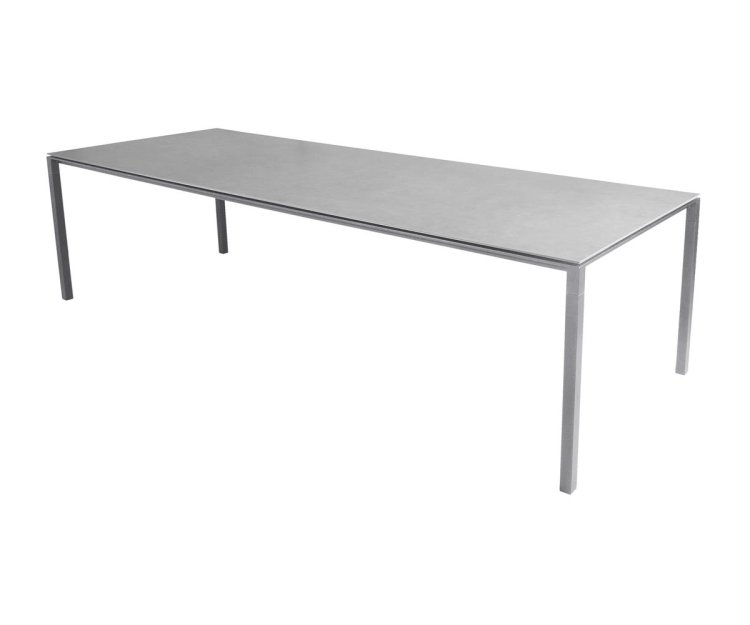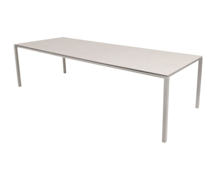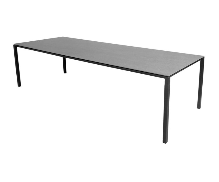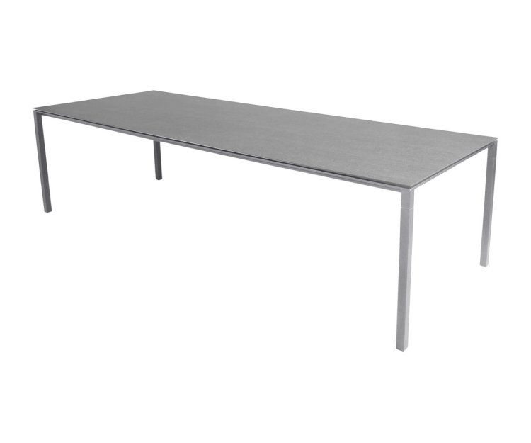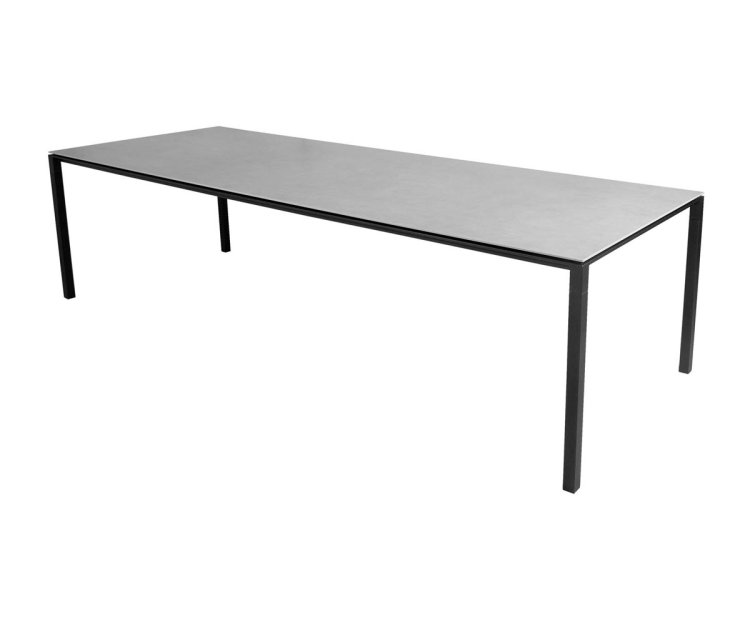 Bordet er fremstillet med et stel i slidstærkt pulverlakeret aluminium, kombineret med en smuk og eksklusiv bordplade i keramik. Materialerne sikrer en lang levetid, og bordet kræver minimal vedligeholdelse. Den ridsefaste overflade kan let rengøres med en fugtig klud, og takket være UV-bestandighed kan Pure spisebordet stå ude i al slags vejr uden at miste sin farve eller finish.