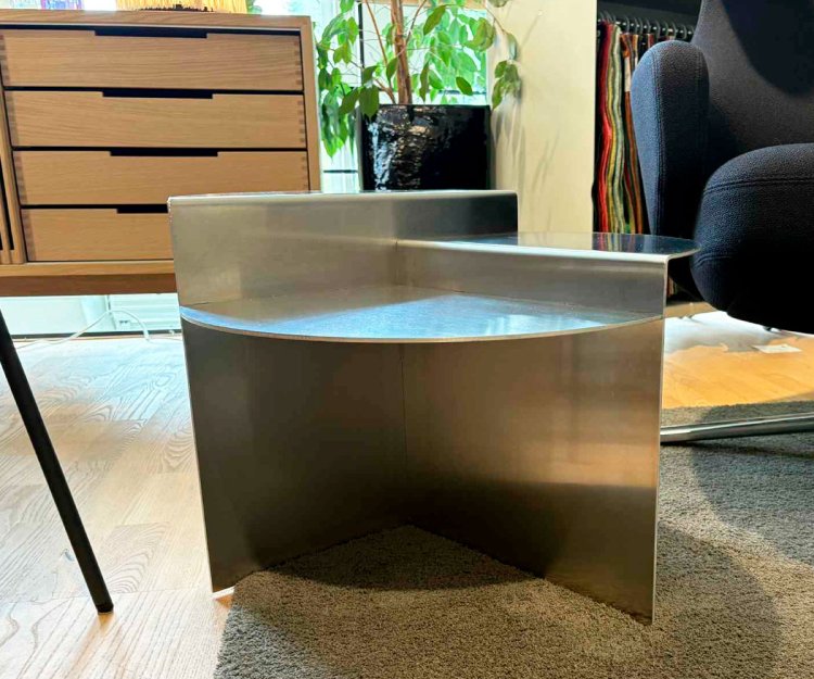 Rivet Side Table har et simpelt men elegant design. Til Rivet projektet blev der udviklet en ny teknik, idet det kan være svært at svejse og skrue i aluminium. Der blev eksperimenteret med forskellige variationer for at skabe det rigtige visuelle udtryk, men endte ud med at blive laserskåret og derefter hamret i hånden.