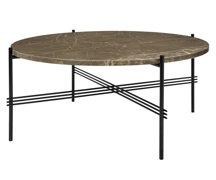 Lækkert minimalistisk bord, designet af succesduoen GamFratesi for Gubi. TS Table sofabordet kommer i tre forskellige størrelser med stel i sortlakeret stål eller messing og top i fire forskellige farver marmor.
