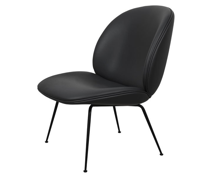 Cool loungestol fra designduoen GamFratesi. Beetle Lounge Chair fås med stel i sort pulverlakeret stål eller messing med sæde/ryg polstret i et væld af tekstiler eller i læder (kontakt os for info). Piping kan vælges i en kontrastfarve eller i læder.