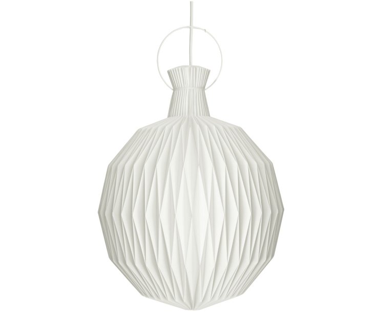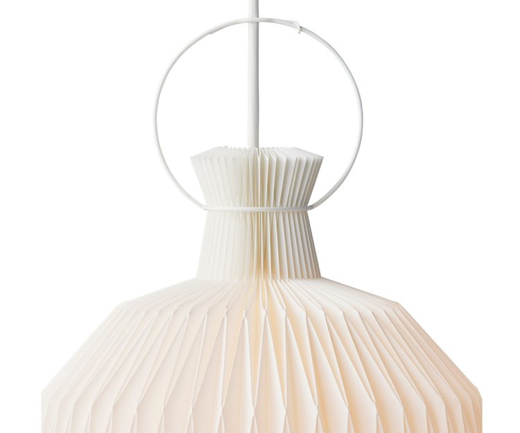 "Frugtlygten" skabt i 1944 er en af de mest detaljerige lamper fra Le Klint, unik og fascinerende i sin fuldendte kombination af design, teknik og håndværk. Dens lukkede form gør den velegnet til at hænge højt, da den skærmer af for lyskilden.
