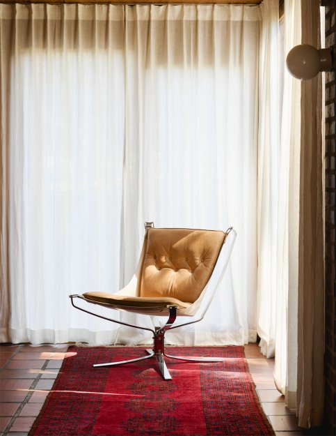 Falcon lænestolen er designet af Sigurd Ressell og bliver produceret af LK Hjelle. Falcon First er den originale udgave af Sigurd Resells ikoniske Falcon-stol – genkendelig på sine karakteristiske knapper og sit elegante, svævende udtryk. Designet i 1971 med inspiration fra hængekøjens afslappede komfort, giver stolen en blid gyngende fornemmelse og en siddeoplevelse ud over det sædvanlige.