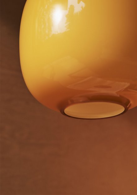 VL 45 Radiohus Pendlen er skabt til at give et jævnt og diffust blødt lys, som skaber en hyggelig atmosfære i ethvert rum. Den nedadrettede åbning i glasskærmen sikrer en mild, fokuseret belysning, der er ideel over spiseborde, i stuer eller som stemningslys. De smukke farver - opalhvid, sart rosa, lys gul og amber - tilføjer varme og karakter til både moderne og traditionelle interiører.