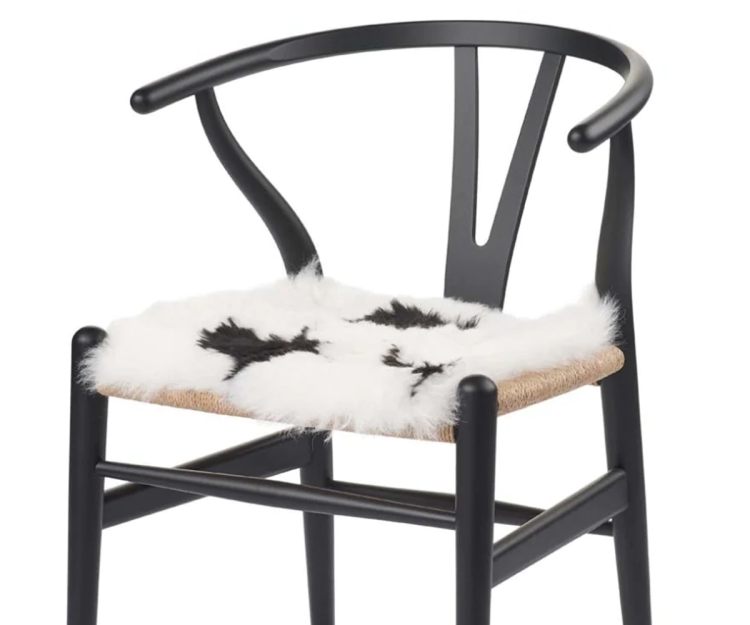 Dejlig varm og blød sædehynde i korthåret lammeskind fra Island. Sædehynden fås i hvid og sort.