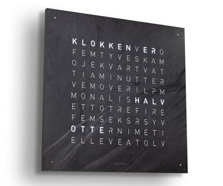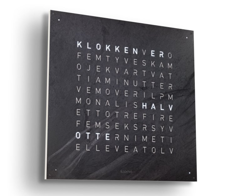 De laserudskårne bogstaver i den ikoniske QlockTwo-matrix lader lyset træde frem i et imponerende spil, hvor moderne LED-teknologi møder urgammel klippestruktur. Resultatet er et ur, der ikke bare viser tiden, men også fortæller en historie om jordens egen tidsregning.