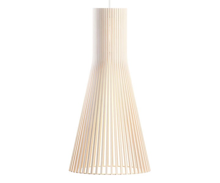 Æstetisk smuk pendel designet af Seppo Koho for finske Secto Design. Secto 4200 var den allerførste pendel i Secto familen. Pendlen er håndlavet i Finland i formpresset birke- eller valnødde finer med laminat på den sorte og hvide model. Secto's lamper giver et fantastisk blødt og smuk lys.