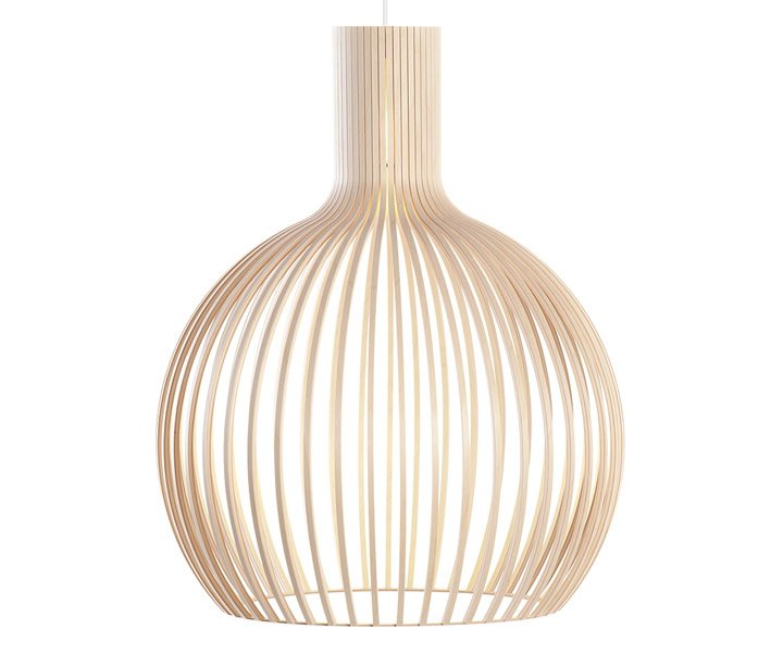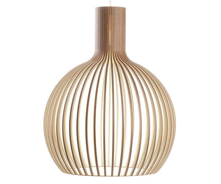 Klassiker fra finske Secto Design. Octo 4240 er designet af Seppo Koho og håndlavet i Finland i formpresset birke- eller valnødde finer med laminat på den sorte og hvide model. Secto lamperne findes i et væld af modeller til både loft, væg og gulv.