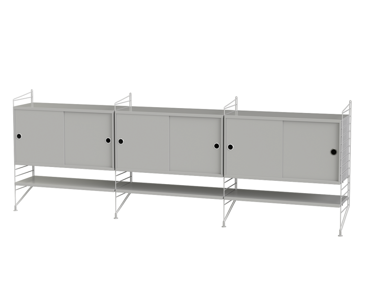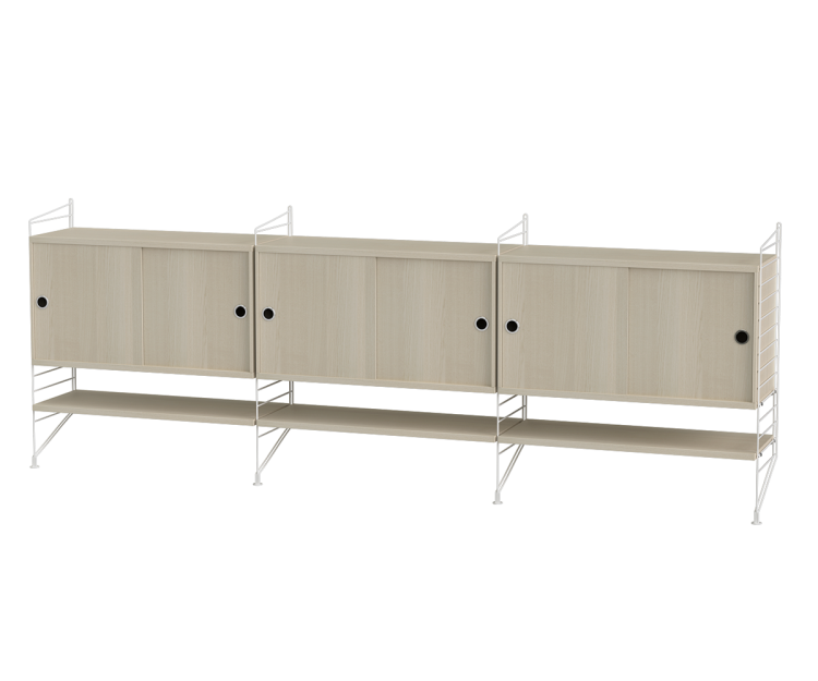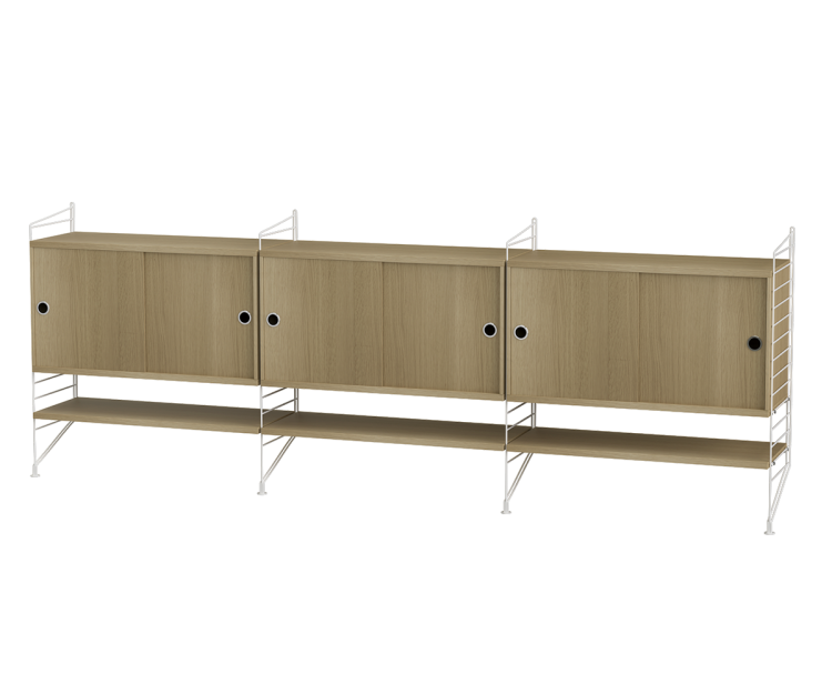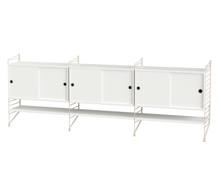 String Livingroom bundle F. Elegant og enkel gulvmonteret skænkløsning med masser af opbevaringsmuligheder med tilføjede hylder nedenunder - perfekt til dine yndlings paperback-bøger.