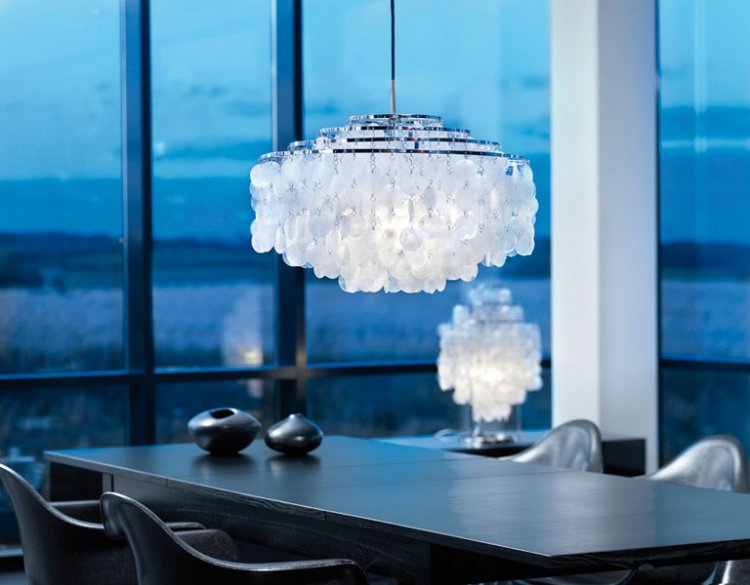 Panton havde gennem længere tid arbejdet på at formgive en pendel, der ville optimere et interiør, og som ikke blot skulle være en lampe i de gængse materialer, han ville skabe noget helt nyt også i formsprog. Og det nye troede han skulle være plastik, som var tidens hotte materiale, men plastikken havde bare ikke det udtryk, som han søgte. Han ville havde noget, som tog sig levende ud samt reflekterede og spredte lyset i interessante, diffuse kaskader. Det fandt han under en rejse med, Marianne Panton.