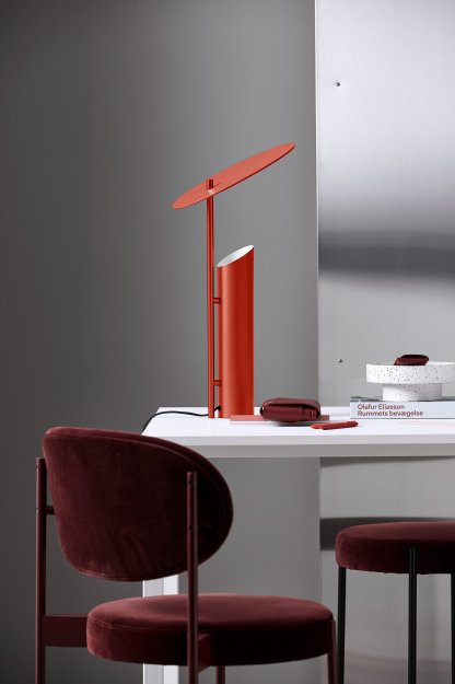 Reflect er det seneste eksempel på et tidsløst design, der er gravet frem fra Verner Panton's arkiver. Reflect er formgivet udfra Panton's originale skitser og det er første gang den bliver sat i produktion. Med Reflect reflekteres lyset fra den skyggeformede hat og danner et skarp men alligevel diffust lys der breder sig til rummet. Bordlampen er udført i pulverlakeret stål i nøje udvalgte farver.