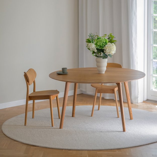 Salon bordkollektionen forener elegance og funktionalitet i et tidløst udtryk. Bordet fås i tre smukke træudførelser, der hver især fremhæver egetræets unikke historie og den omhyggelige forarbejdning. Tillægsplader kan tilvælges i matchende finish, så helheden bevares – også når bordet er slået ud.