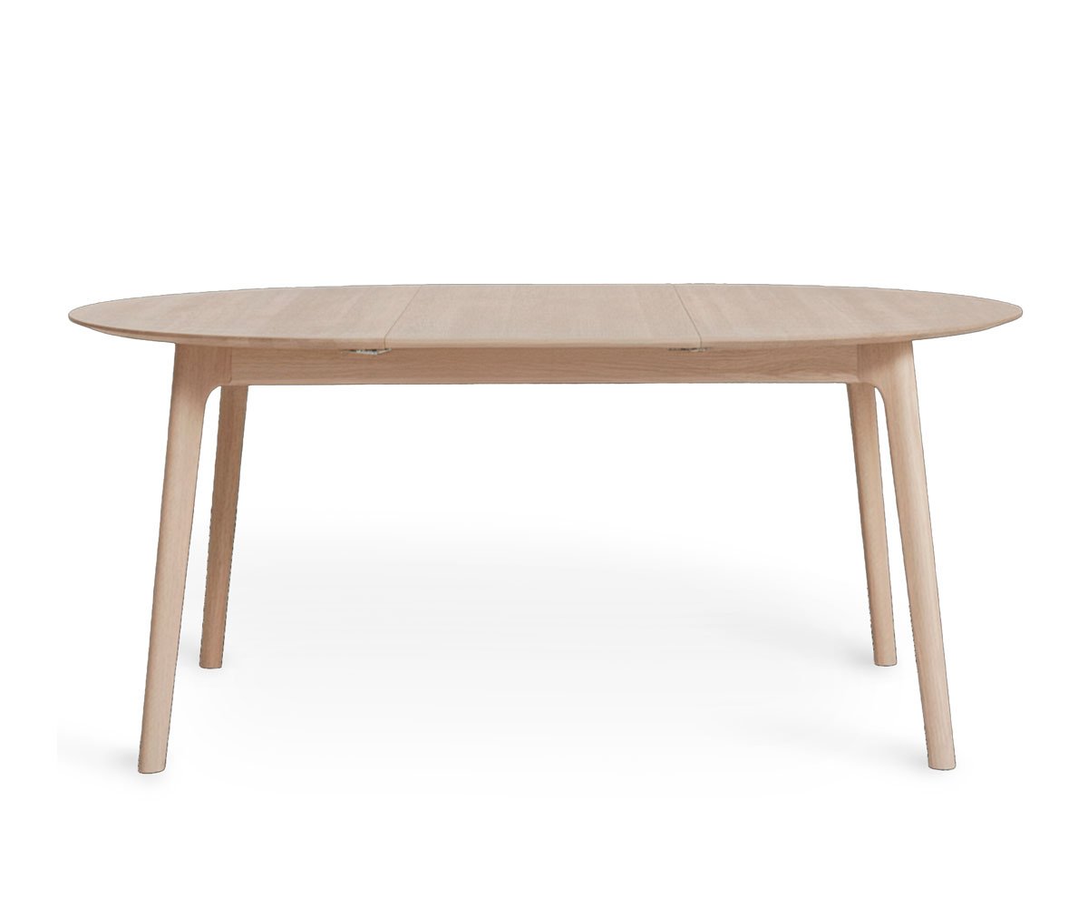 Et rundt spisebord med udtræk, der er skabt til både hverdag og fest.