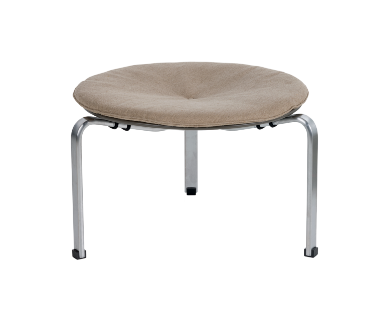 Den ikoniske PK33™ er indbegrebet af Poul Kjærholms brug af samleteknikker, hans udforskning af materialer samt unikke forståelse for hvordan en konstruktion kan forenkles til det absolut mest stringente. Skamlen med det trebenede matte kromfjederstel låner elementer fra Kjærholms andre designs, og bevarer fortsat sit eget unikke udtryk.