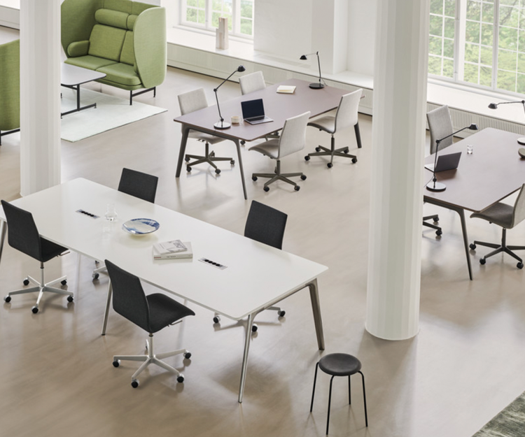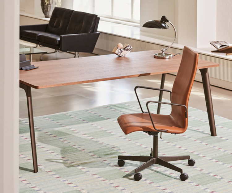 Oxford™ stolen designet af Arne Jacobsen blev i sin tid håndlavet til proffessorerne på St. Cathrine's Colloge i Oxford, England. Stolen er komfortable, hvilket gør den velegnet både i mødelokale, hjemmekontor og spisestue. Designet på stolen har over tid udviklet sig, men er tilbage i en nyere udgave, som stadig er tro mod det klassiske. Stolen, som fås enten med mellemhøj eller lav ryg kombineret med vippemekanisme og justerbare sædehøjde, giver en mere naturlig siddestilling, og står på Arne Jacobsens smukke 5-grenet stjernefod med hjul. De vinklede armlæn passer perfekt under bordet.