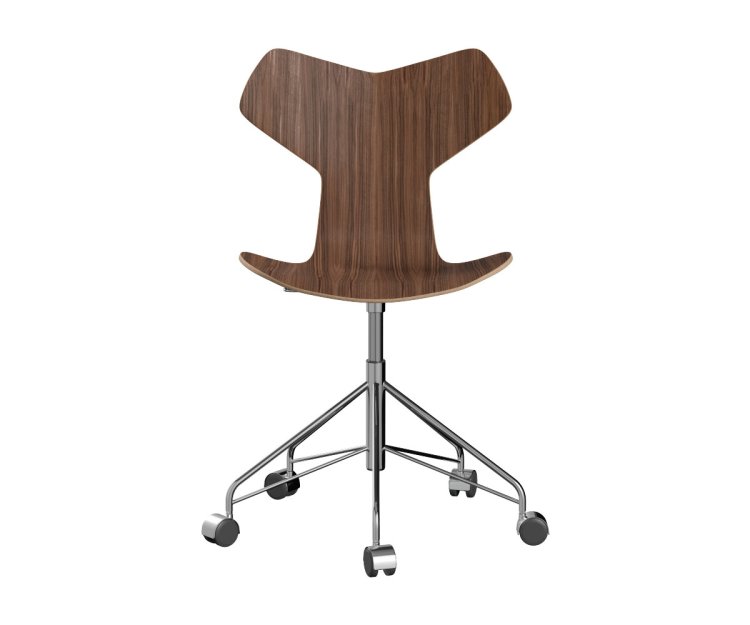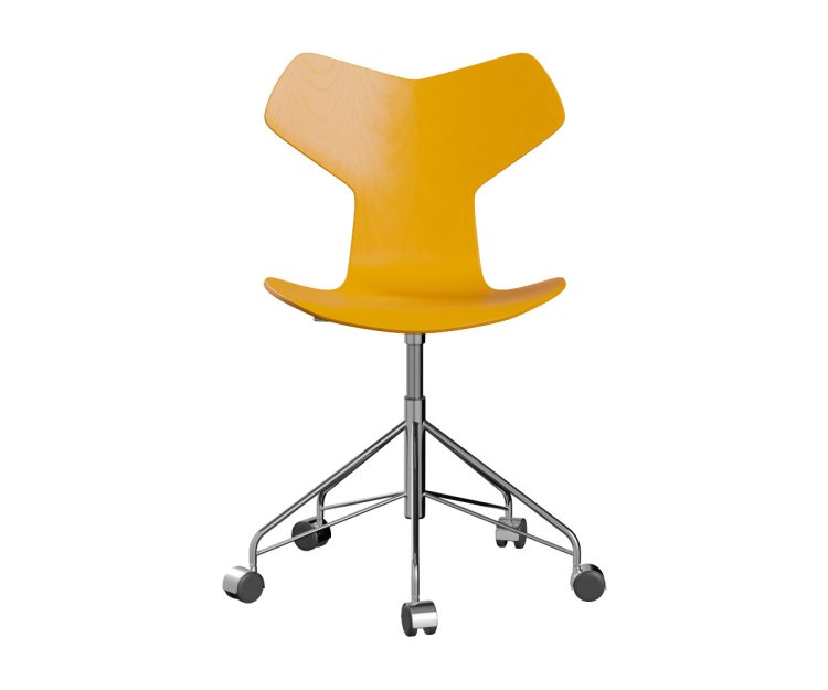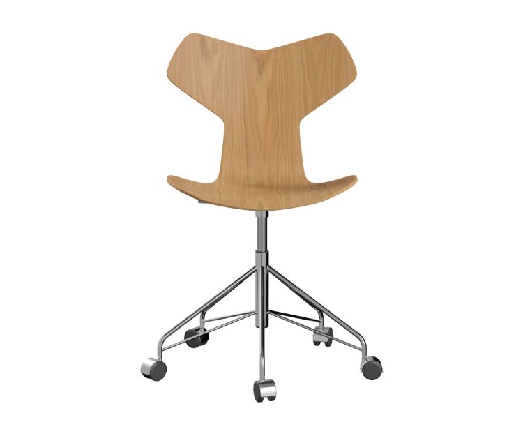 Arne Jacobsens Grand Prix™ stol blev introduceret af Fritz Hansen på designernes forårsudstilling på det Danske Kunstindustrimuseum i København i 1957. Senere samme år blev stolen udstillet på Triennalen i Milano, hvor den vandt førsteprisen - Grand Prix, som er udstillingens fineste udmærkelse. Med et drejestel til Grand Prix stolen får du en smuk kontorstol, som nemt kan trækkes med hen til spisebordet, når der er brug for en ekstra sideplads.