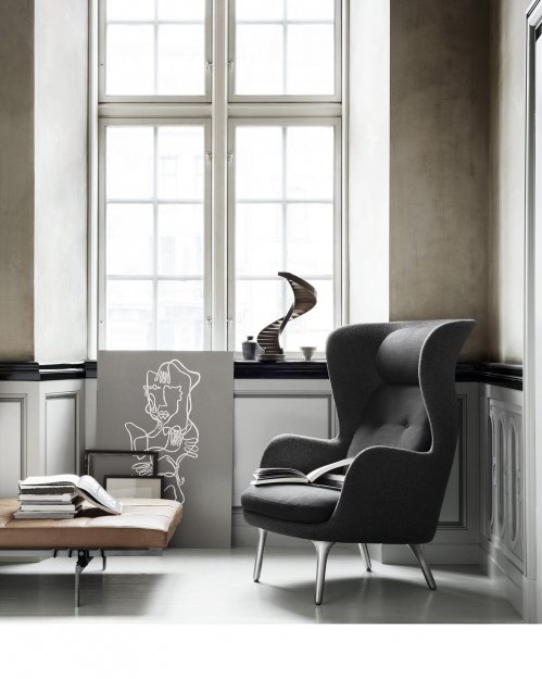 Med Ro™ har Jaime Hayon skabt en loungestol der på én og samme tid er komfortabel og skulpturel. Ro giver dig muligheden for at fordybe dig og have en stund helt for dig selv. Vælg mellem Designer Selection-farver i stof til din Ro loungestol med ben i smuk, mat børstet aluminium. Siden spanske Jaime Hayon blev tilføjet designerstaben hos Fritz Hansen har han vist humor og personlighed i alle sine designs - fra den afskærmede Ro™ loungestol til det legesyge Analog™ spisebord.