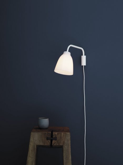 Baseret på den velkendte Caravaggio™ form har Cecilie Manz skabt en væglampe, der er stringent, raffineret og frem for alt funktionel. Den klassiske skærm er monteret på et flexrør, som gør det muligt at vippe skærmen og dermed styre lyset. Lampen kan ligeledes drejes 180 grader, hvilket gør den velegnet til alle rum, f.eks. stuen, køkkenet eller soveværelset. Kontakten er placeret diskret nederst på vægbeslaget. Alle lamperne har tre smalle slidser i toppen af skærmen som tillader lys at slippe ud. Opallampen giver et varmt, diffust lys. Det neutrale farvevalg tillader væglamperne at indgå allevegne, også over tid.