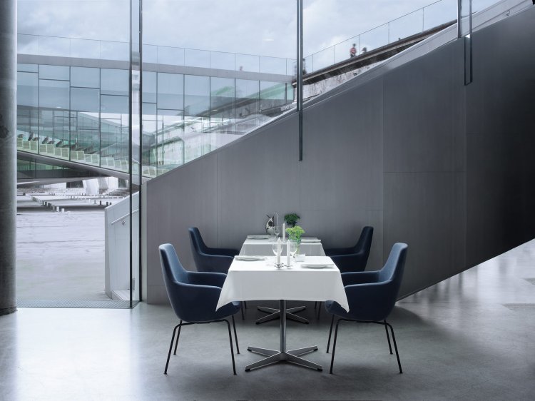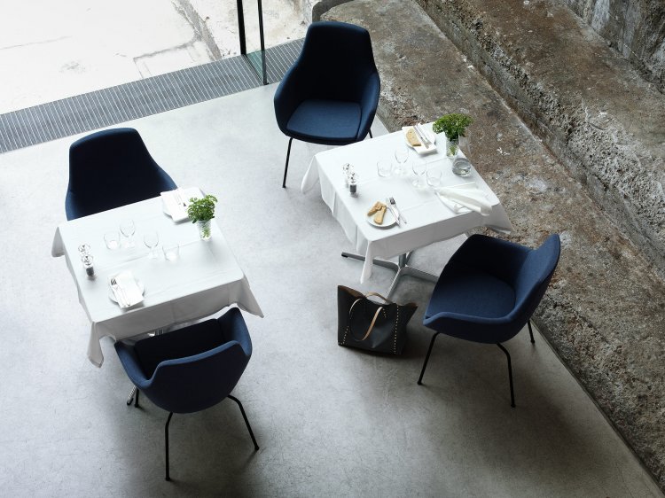 Den smukke stol med den høje ryg fik oplagt navnet Giraf™. Arne Jacobsen skabte den ikoniske stol i 1959 som en del af sit totaldesign for SAS Royal Hotellet i København, hvor stolen blev designet med restauranten for øje. Jacobsen legede med flere versioner af Giraffen, og stolen, som vi kender den i dag, er den Lille Giraf™, kendetegnet med en lidt lavere ryg. Den Lille Giraf er oplagt smuk og funktionel i hotel lobbyer, kantiner eller mødelokaler, men pynter ligeledes i hjemmet rundt om middagsbordet. Den Lille Giraf oser af Arne Jacobsen design og Fritz Hansen kvalitetspolstring, når det er bedst. Stolen forener æstetik med komfort.