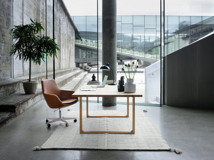 Den smukke stol med den høje ryg fik oplagt navnet Giraf™. Arne Jacobsen skabte den ikoniske stol i 1959 som en del af sit totaldesign for SAS Royal Hotellet i København, hvor stolen blev designet med restauranten for øje. Jacobsen legede med flere versioner af Giraffen, og stolen, som vi kender den i dag, er den Lille Giraf™, kendetegnet med en lidt lavere ryg. Den Lille Giraf er oplagt smuk og funktionel i hotel lobbyer, kantiner eller mødelokaler, men pynter ligeledes i hjemmet rundt om middagsbordet. Den Lille Giraf oser af Arne Jacobsen design og Fritz Hansen kvalitetspolstring, når det er bedst. Stolen forener æstetik med komfort. Ligesom mange andre af Fritz Hansens designs, så er Giraffen et godt eksempel på dansk 50'er design; tidsløshed, håndværk, når det er bedst og design, som har evnen til at skille sig ud samtidig med at kunne tilpasse sig omgivelserne.
