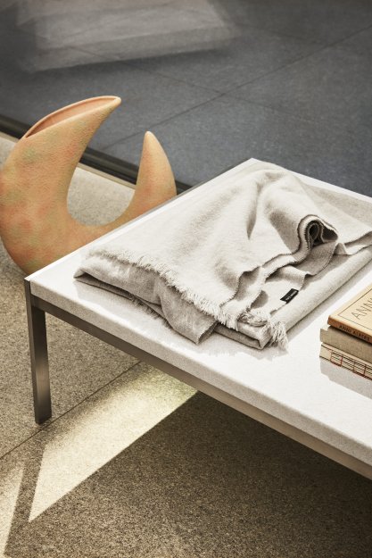En blød plaid i 100% fin merinould lavet i en nuance, der komplimenterer en lang række farver. Fritz Hansens nye plaid har en lethed over sig, og er samtidig varm. En ny klassiker, inspireret af håndvævet strik.