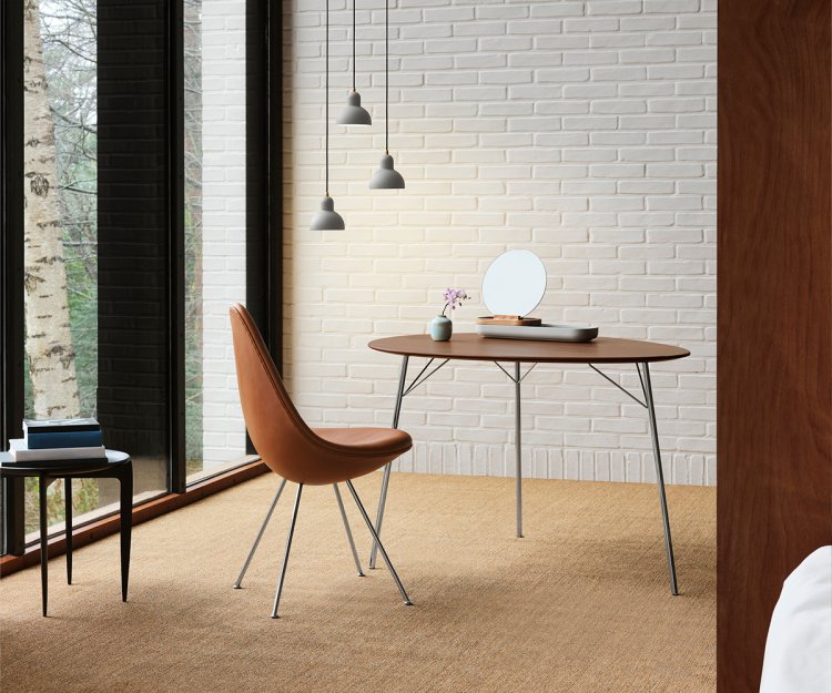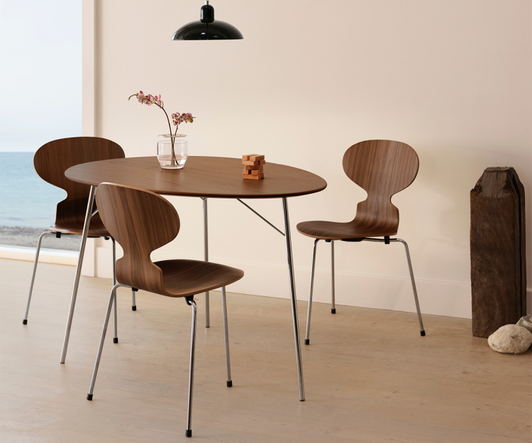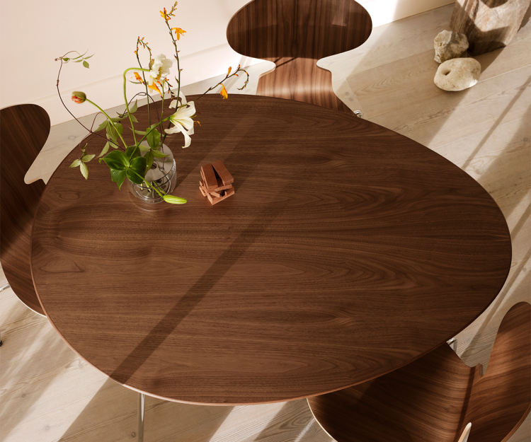 Som en del af markeringen af 150 års-jubilæet for Fritz Hansen lanceres Arne Jacobsens Æggebordet™ i smukt, FSC-certificeret valnødfinér. Æggebordetbordet passer godt ind i mange forskellige scenarier; i det lille køkken, i spisestuen, i en hall eller på kontoret. Hvor end bordet placeres, løftes rummet af dets æstetiske og alsidige form, mesterlige håndværk og førsteklasses materialer.