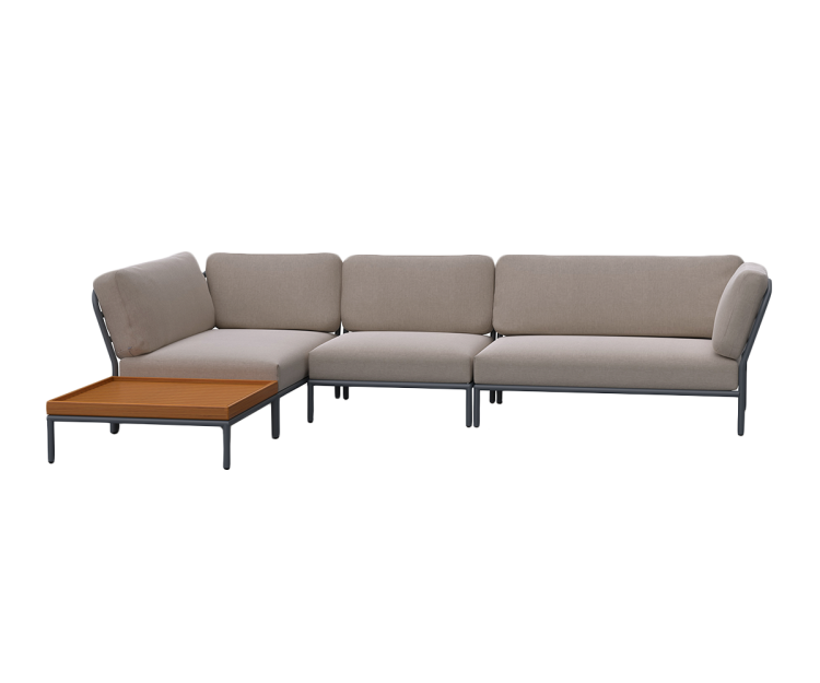 Nyd de solrige dage og lange sommernætter med stor komfort i Level fra HOUE. Level er et modulært system, der gør det muligt at skabe en række unikke udendørs loungeopstillinger. Level serien består af forskellige borde og sofamoduler du frit kan sammensætte. Stellet er udført i pulverlakeret letvægts aluminium og puder i vandtæt stof der er nemt at vedligeholde.