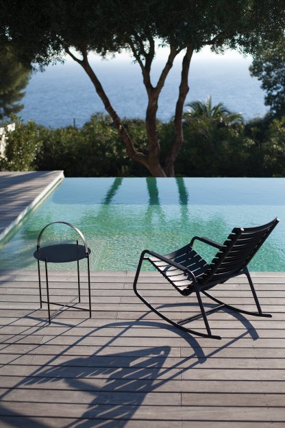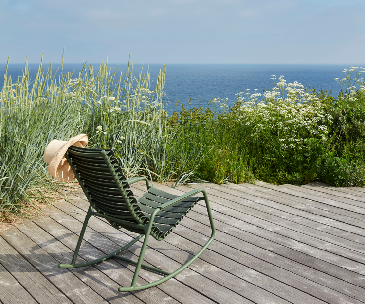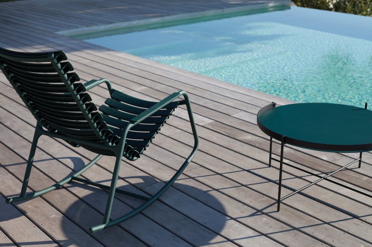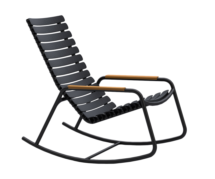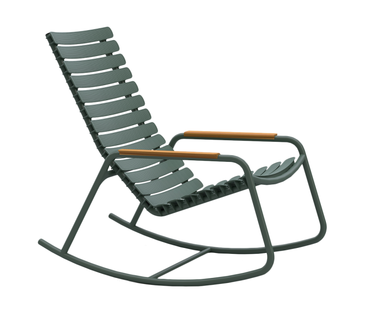 Clips Rocking Chair med bambus armlæn er den ultimative komfort - selv uden en pude. Rammen er lavet i pulverlakeret aluminium og sæde/ryg i lameller af UV-beskyttet genbrugsplastik der er i stand til at modstå de fleste vejrforhold og holde vedligeholdelsen til et minimum. Gyngestolen leveres i flere farver med bambus eller aluminiums armlæn.