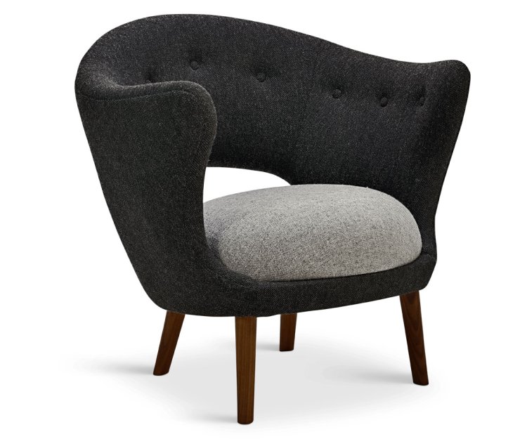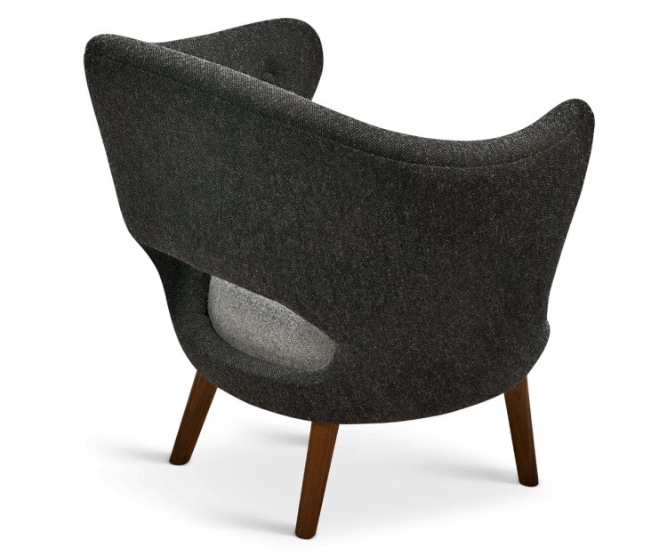 Med sit karakteristiske svævende ryglæn og den markante åbning mellem ryg og sæde bryder Willadsen-stolen med traditionelle polstrede møbler. Formen er organisk og indbydende – en dynamisk omfavnelse af kroppen, hvor de let skråtstillede ben tilføjer en subtil lethed. Designet balancerer mellem funktion og kunst, inspireret af Finn Juhls fascination af den moderne skulptur og kunstens frie formsprog.