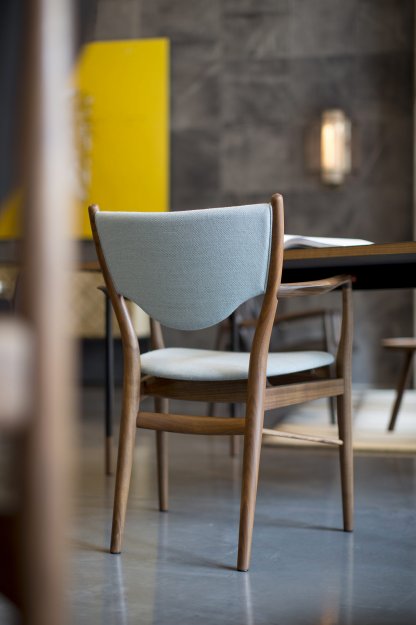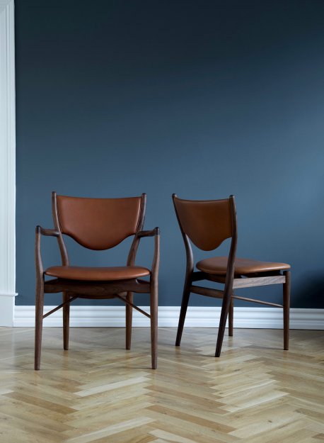 Denne stol er én af de smukkeste stole fra Finn Juhls hånd, oprindeligt tegnet for snedkermester Niels Vodder i 1946 til Snedkerlaugets udstilling. I 1953 modificerede Finn Juhl stolen i en enklere og mere aerodynamisk udgave for det daværende firma Bovirke. Det er denne udgave, som vi har valgt at relancere.