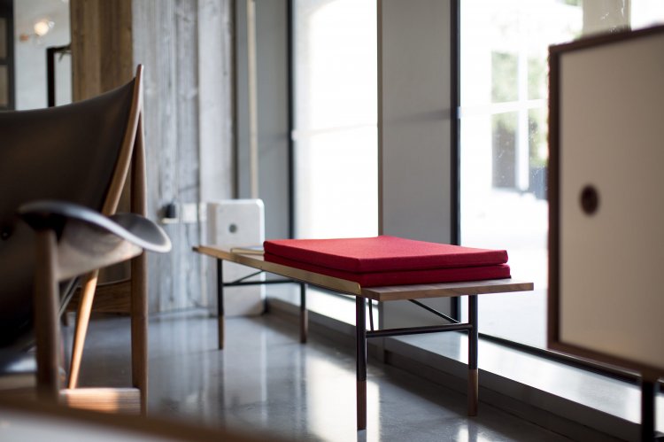 Skabt i kølvandet på sin internationale succes – særligt i USA i begyndelsen af 1950’erne – forenede Finn Juhl dansk formsprog med inspiration fra amerikansk modernisme. Bordbænken fra 1953 er et markant eksempel på denne periode, hvor stålrøret blev introduceret som bærende element i hans møbeldesign. Resultatet er et møbel, der balancerer industrielt lethed med Juhls karakteristiske sans for proportioner og raffinerede detaljer.
