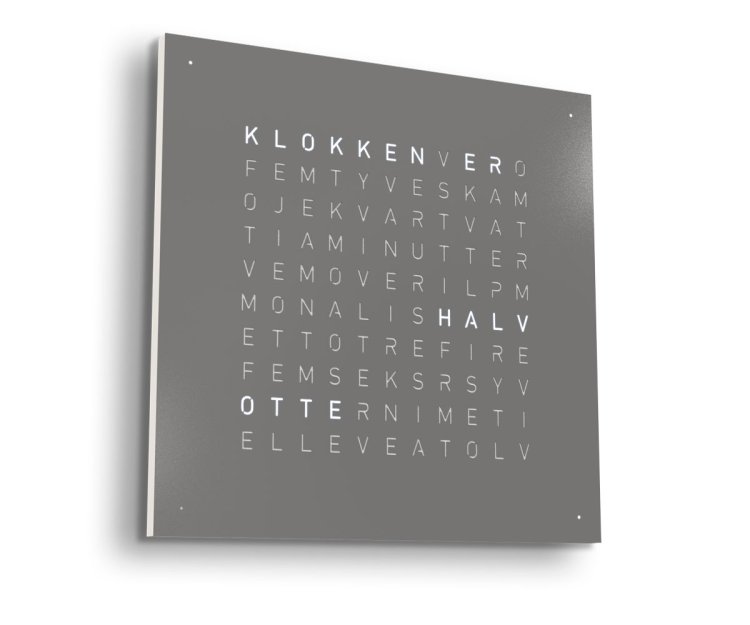 QlockTwo Grey Pepper er det ideelle valg for den designbevidste, der søger et tidløst og minimalistisk udtryk med en kunstnerisk dimension.