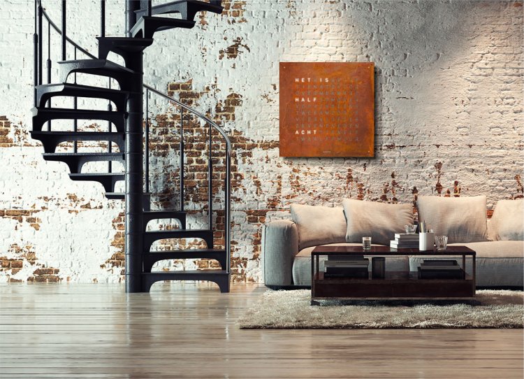 QlockTwo Earth 90 Creators Edition Rust er et ur i særklasse. Den imponerende frontplade på 90 x 90 cm er fremstillet af råt stål, som gennemgår en nøje kontrolleret, håndlavet forædlingsproces, hvor materialet patineres til perfektion. Resultatet er en levende overflade i dybe røde og brune nuancer – nogle gange rolige og harmoniske, andre gange kraftfulde og dynamiske – men altid helt unik.