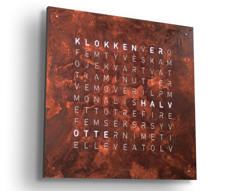 Hvert eneste ur er håndbearbejdet og individuelt nummereret med lasergravering, hvilket gør det til et enestående samleobjekt. Ingen to overflader er ens, og hvert QlockTwo Rust fortæller sin egen historie gennem materialets naturlige forvandling.